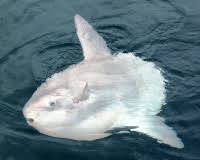 Mola mola swimming on its side